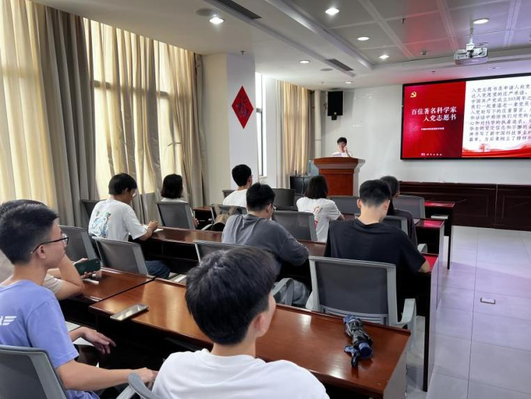 最后,刘铎洵分享了贝时璋和陈世骧的故事。同学们从两位科学家的故事中,深刻感悟到了他们对科学纯粹热爱的执着精神以及为国家科学事业无私奉献的崇高品质。面对国家科学领域的挑战与困难,两位科学家毫不犹豫地递交入党申请,将个人的理想与国家的需要紧密结合,用实际行动诠释了党员先锋模范作用。同学们决心以他们为榜样,为国家的科技进步贡献自己的力量。