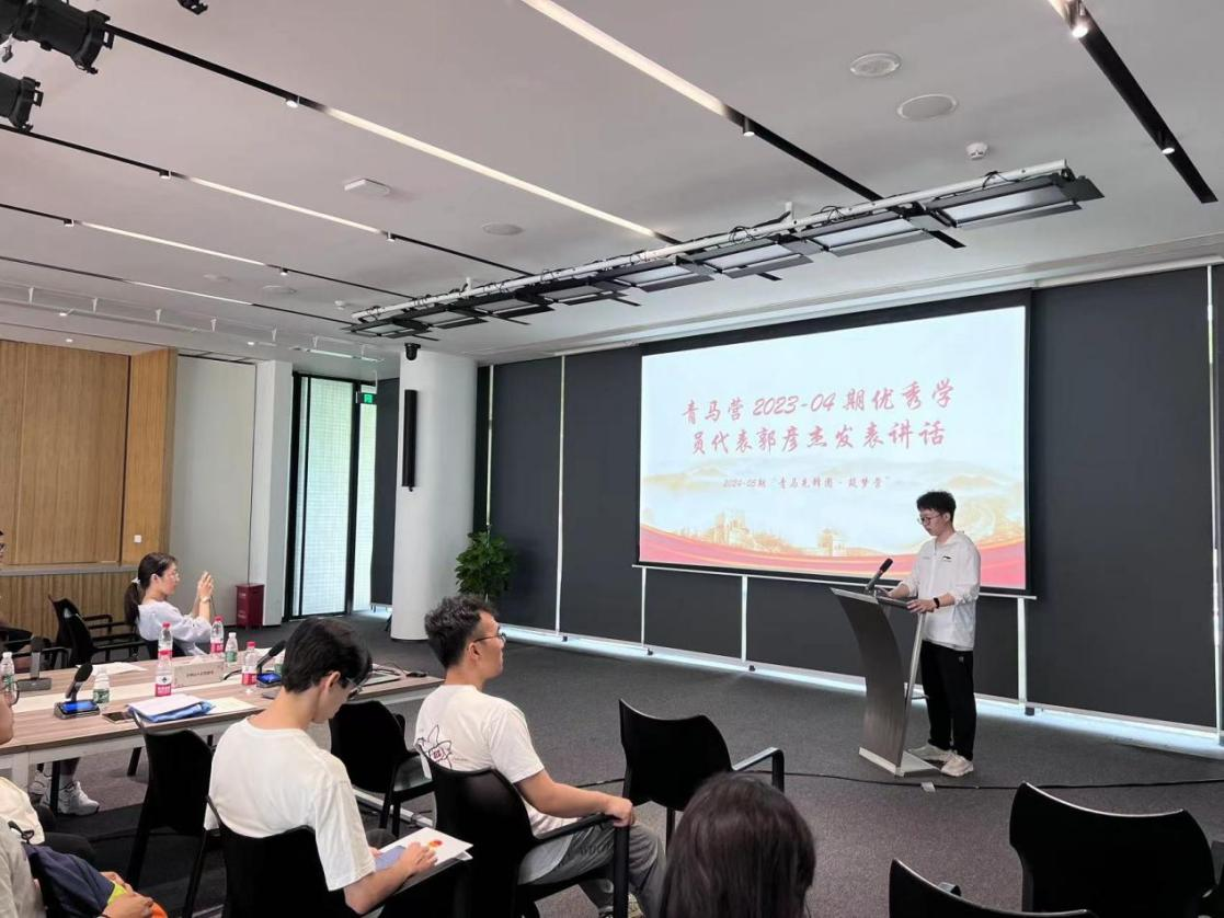 主持人依次介绍到场嘉宾之后,杨茵媚为青马营2023-04期优秀学员颁发荣誉证书。郭彦杰作为优秀学员代表发言,他表示在过去的一期青马营活动中结识了许多优秀伙伴,获得了前往腾讯、百度等知名企业参观学习的宝贵机会,还现场观摩了位于盐田区的深圳国家基因库。回顾过去,04期的三十多位同学团结在青马营的旗帜下,深入学习党的历史,加深了对中国特色社会主义事业的认识和了解。展望未来,学员们将继续从党史学习教育中汲取精神力量,将在青马营所学所得应用于往后的学习和实践中,不断鞭策自己砥砺前行,笃行致远。