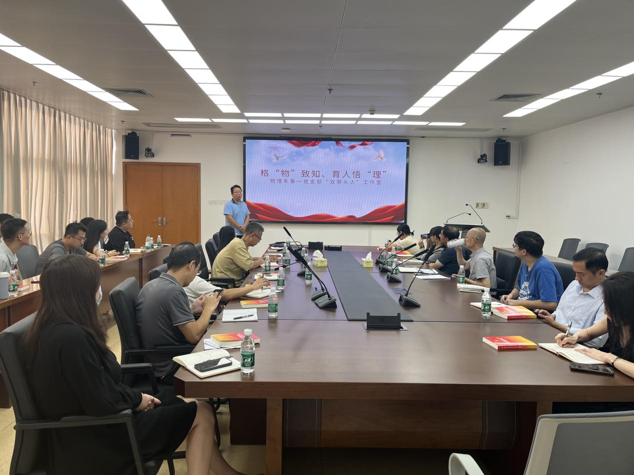 “双带头人”教师党支部工作室——王斌工作室进作《格“物”致知、育人悟“理”》党建工作经验分享。王斌从工作基础、建设计划、预期成果等几方面开展宣讲。通过党课、班会,招生、座谈等形式,加强政治引领,搭建物理思想文化交流平台,突出物理文化熏陶;通过建设课程思政库,成立教研组、课程小组等,将基层党建工作与教书育人相结合;通过集体教研、听课评课等方式,建成物理系“教学名师”团队。以党建引领助推学院“十四五”规划落地开花,创新助推学院思政教研改革硕果累累,示范助推学院特色品牌建设争先创优。
